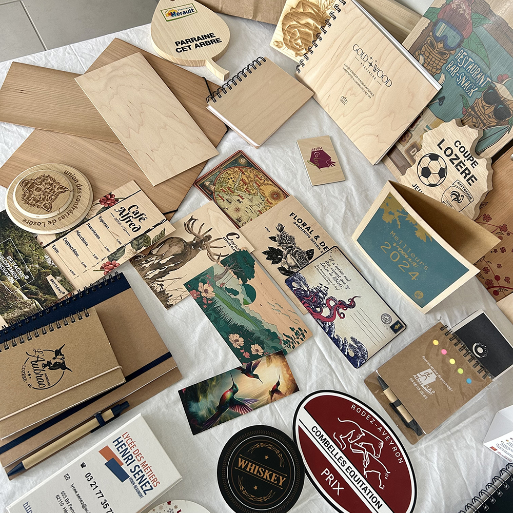 Découvrez nos réalisations en bois personnalisées : des supports uniques, durables et créatifs conçus pour valoriser chaque projet.